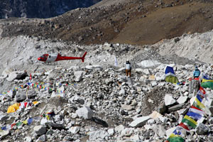 Image: A Helicopter relays the Japanese team and gear to Pheriche.